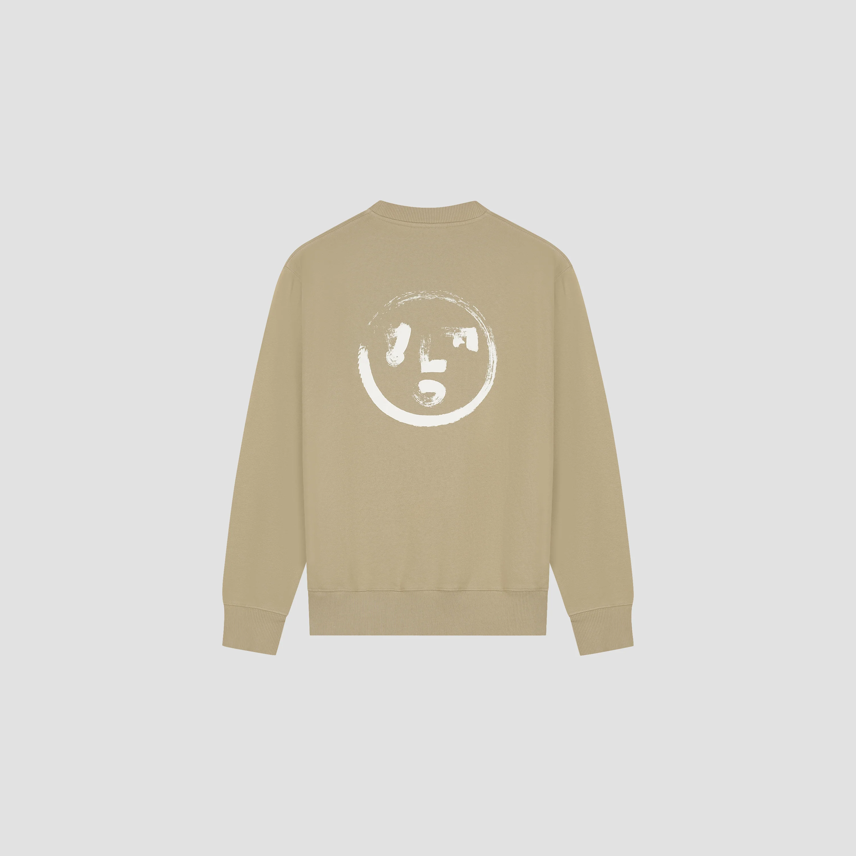 The Brushstroke Face Crewneck in Treehouse showcases a bold hand-painted face graphic on the back. With its soft organic cotton construction and clean silhouette, it combines artistic expression with everyday comfort.