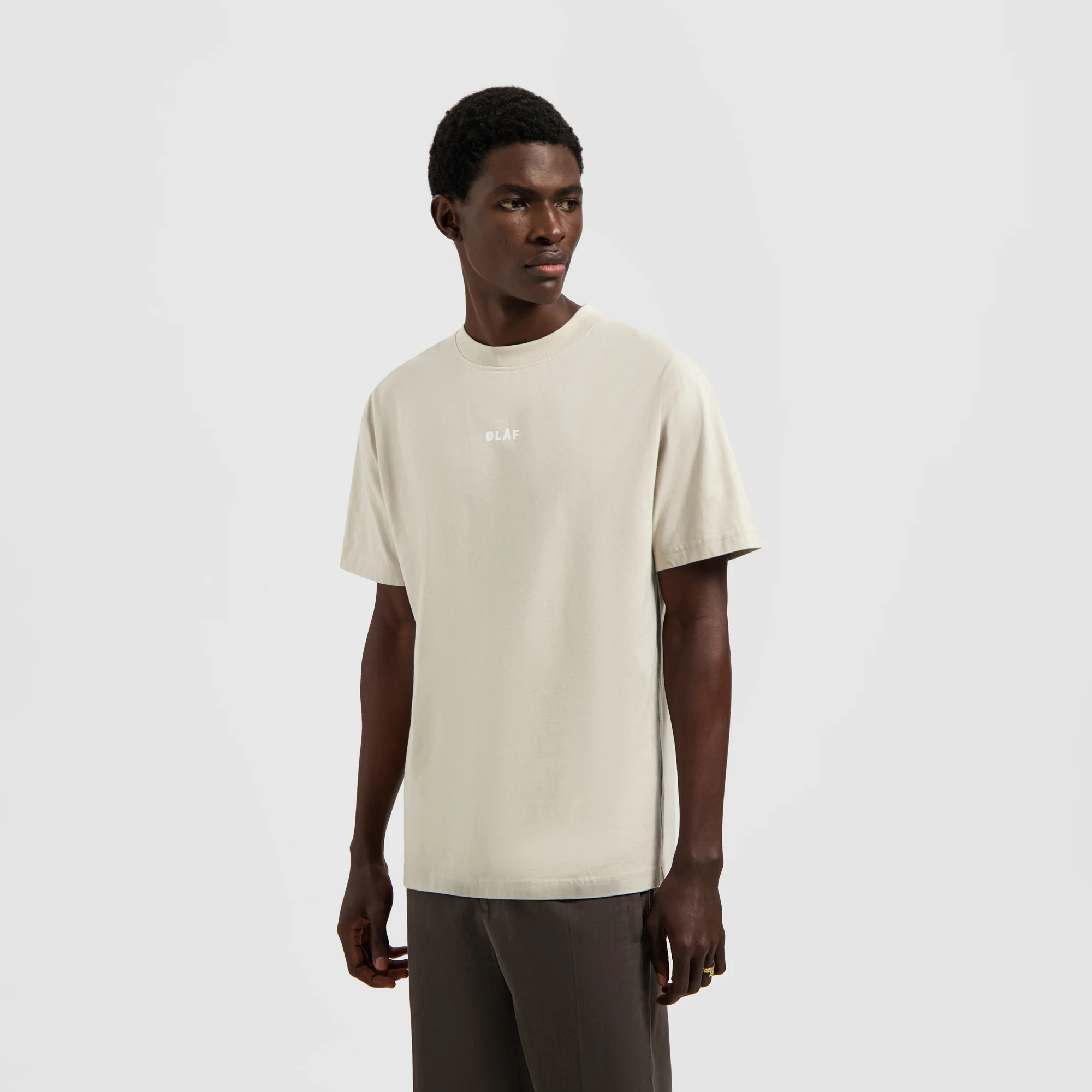 Keeping it clean yet bold, the OLAF Block Tee features a white statement logo on a Cement coloured t-shirt. The perfect simple design t-shirt that fits with every fit.