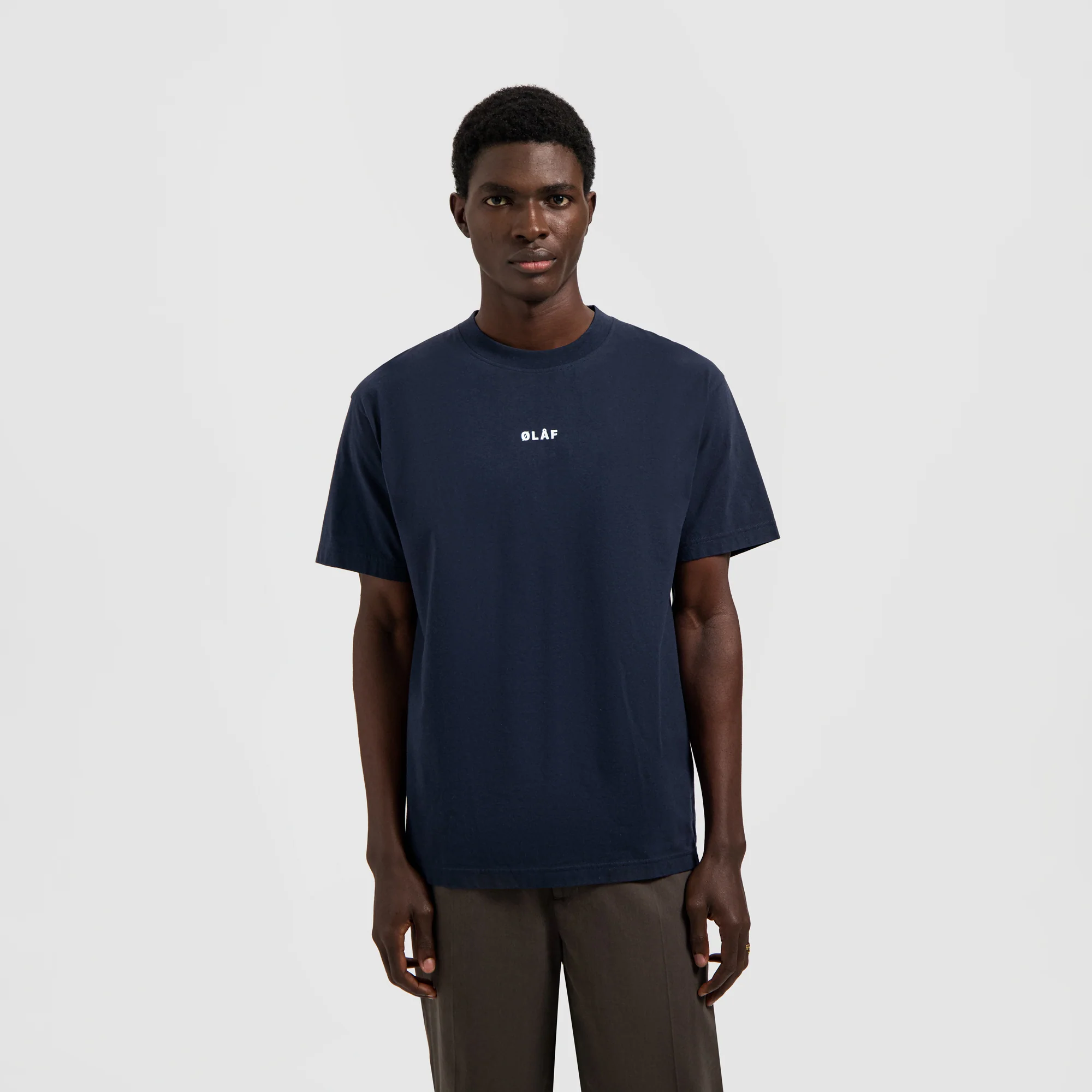 Keeping it clean yet bold, the OLAF Block Tee features a white statement logo on a navy blue t-shirt. The perfect simple design t-shirt that fits with every fit.