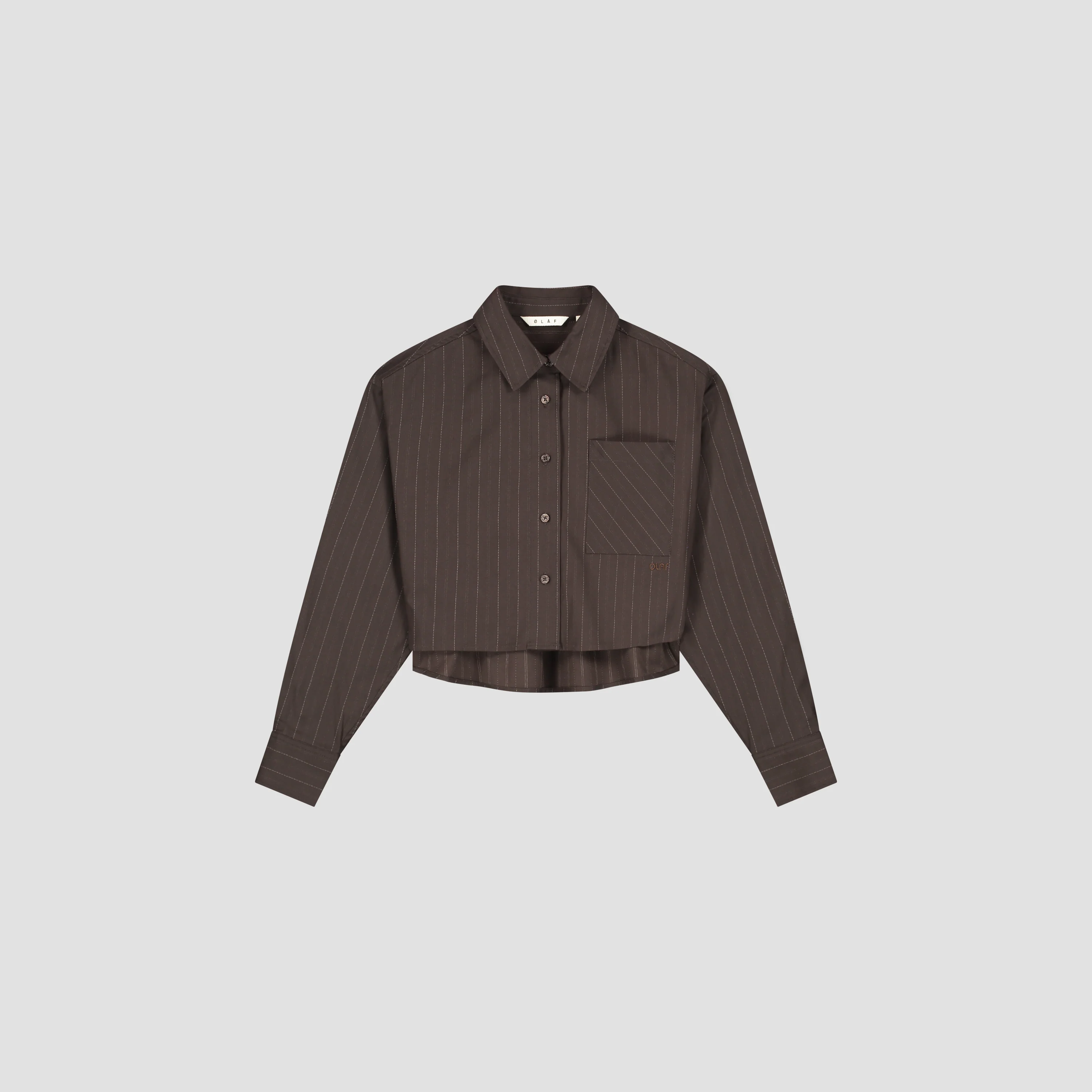 The Pinstripe Cropped Shirt in Hot Fudge is a modern take on tailoring, featuring a cropped silhouette and diagonal pinstripe detail on the chest pocket. Crafted from cotton, it’s finished with tonal logo embroidery for a clean look.