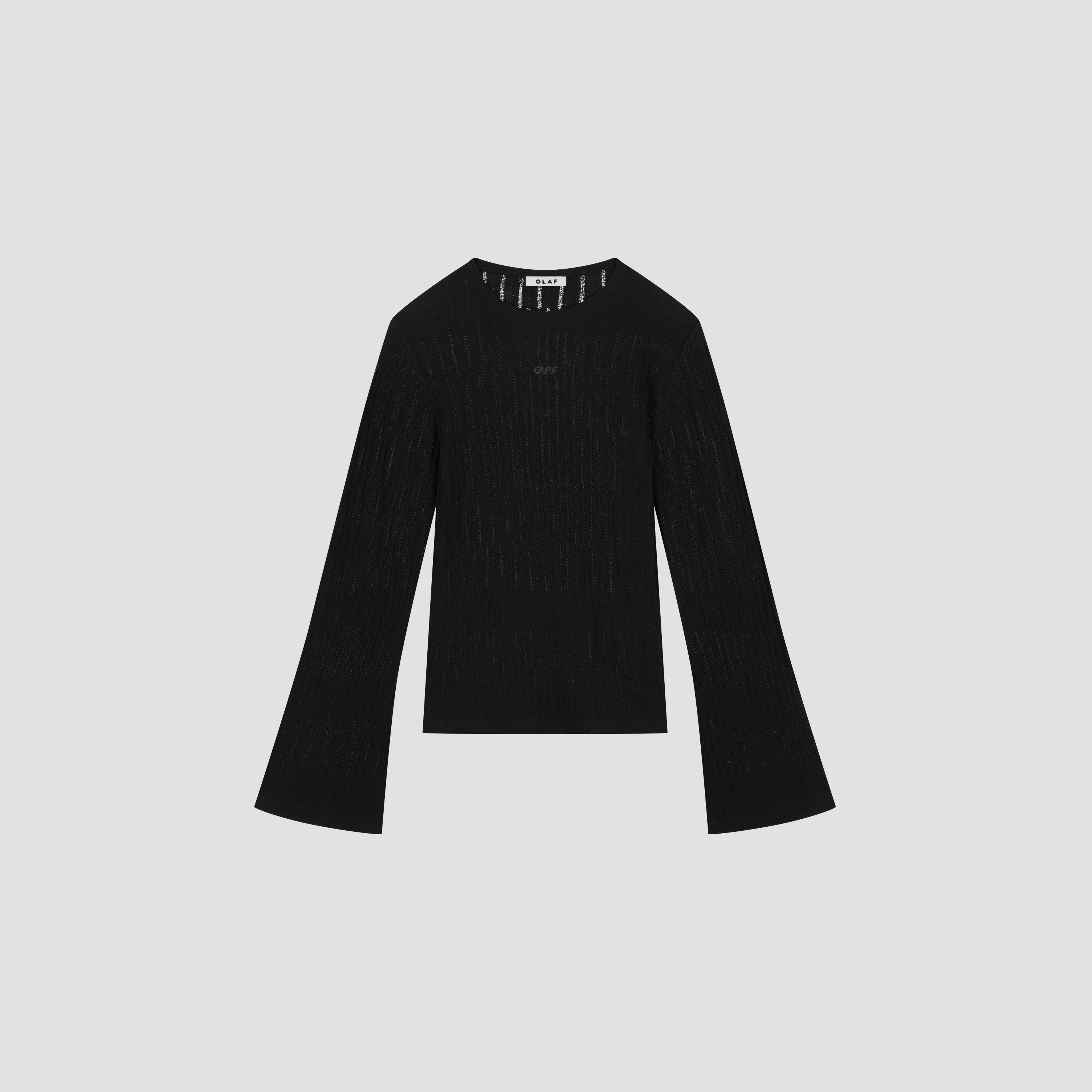 The Retro Logo Wide Sleeve Knit in Black offers a bold, modern silhouette with its relaxed wide, long sleeves and clean knitted texture. It combines everyday comfort with a striking retro-inspired logo embroidered on the front.