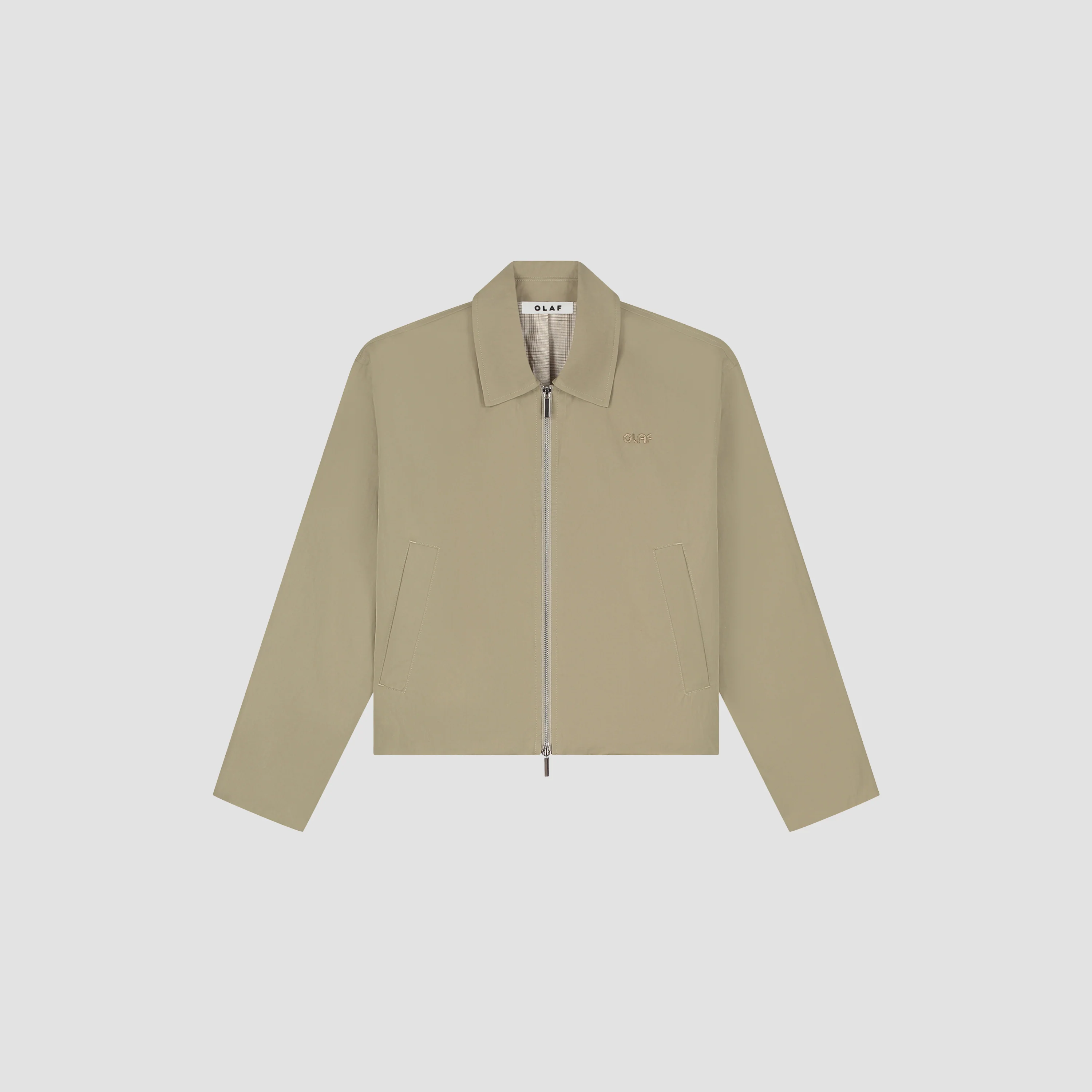 The Zip Up Jacket in Treehouse offers a modern outerwear silhouette with a clean zip-front design. A practical yet refined layer for everyday use.